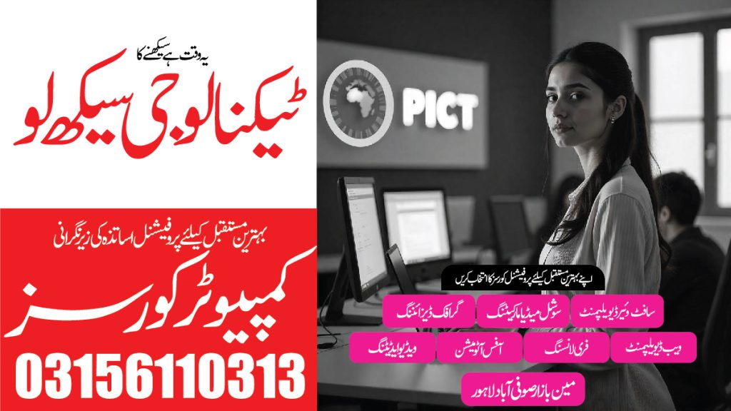 All the mentioned courses are practical based and currently most demanding in local and international industry. If you are dreaming for a good job in Pakistan or wondering for freelancing opportunities. These computer short courses would be the valuable asset in your portfolio. We believe PICT is the best option for you if you are staying at Marzi Pura Because PICT is not just computer academy, it’s life changing organization where we build future of students and professionals. We believe on delivery, and for the same purpose we design comprehensive course outline for each short computer course. So, that our valued students learn the most demanding skill with practical examples, and they can implement complex assignment at the time of course. Market demand real world experience and it’s not possible that you can learn without implementation of real world scenario and assignments – for the same purpose we arrange sessions where you can learn and implement the real world scenarios and assignment. We offer special courses at PICT for the people of Marzi Pura These courses are not only for students – if you are professional and you want to improve your skills, don’t miss this great opportunity. Because we offer professional courses at PICT. All the courses listed above are delivered by industry professionals. Our aim is to create skillful resources in Marzi Pura You can share these details with your friends and family members those are staying in Marzi Pura Sharing of this message is not only the valuable for end user, it’s also our social responsibility to share the useful information with professionals and with students those are looking for really helpful and supportive institute to learn for personal growth and for the development of country. The Punjab Institute of Computer and Technology (PICT) is a renowned computer training academy located in Sufiabad, Lahore, with a mission to empower the underserved youth of the area through practical and market-oriented IT skills. We aim to uplift the socio-economic conditions of the community by equipping students and professionals with skills that lead to employment, freelancing, and entrepreneurship opportunities. Let’s join hands to support the community for their development and for advancement. Your cooperation in-term of support on social media platform is also valuable for us. So, why not to share this message with students and with professionals those are looking for such institute where they can improve their skills for personal and community growth. To find the best computer academy PICT you may also search computer academy near me so that you can find the best computer academy PICT near you. If you are staying anywhere in Lahore you can join us as we are located on main road 19KM/Ferozpur road.